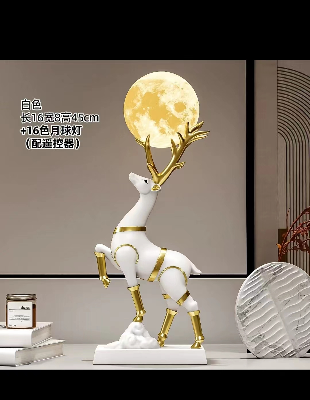 型号:摆件- 白色揽月灵鹿