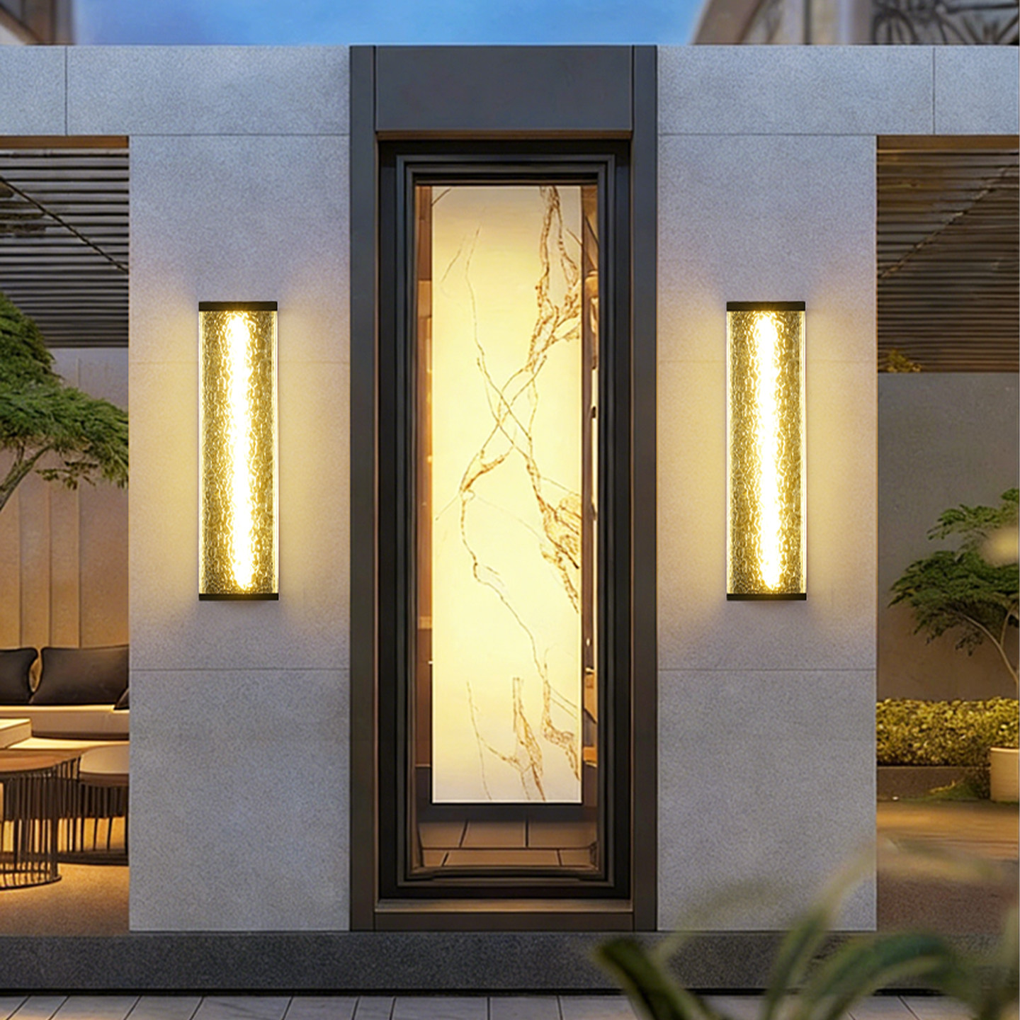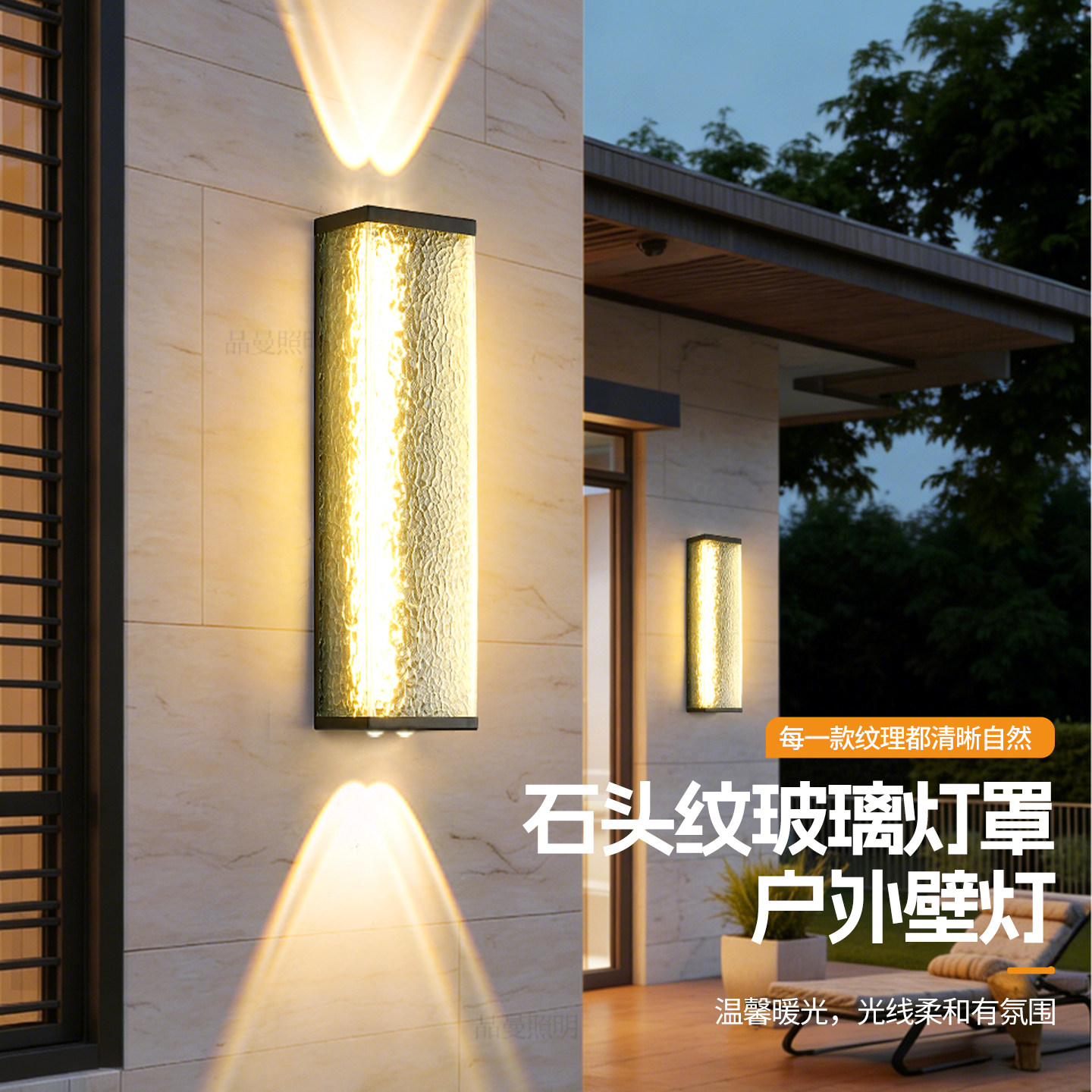 [新品]防水壁灯-3377-【石头纹玻璃】上下射灯-600