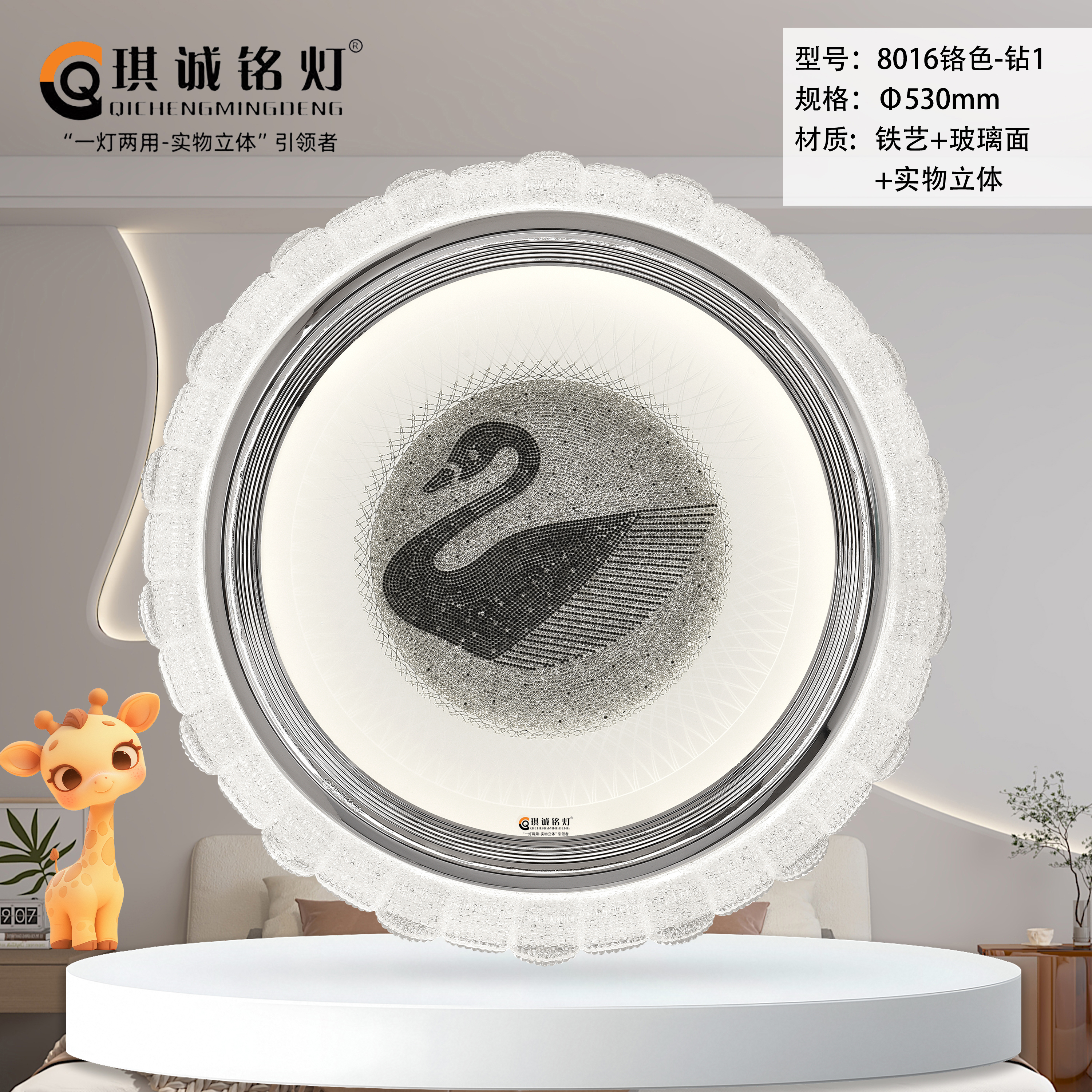 主体材质:铁艺+玻璃面+实物立体