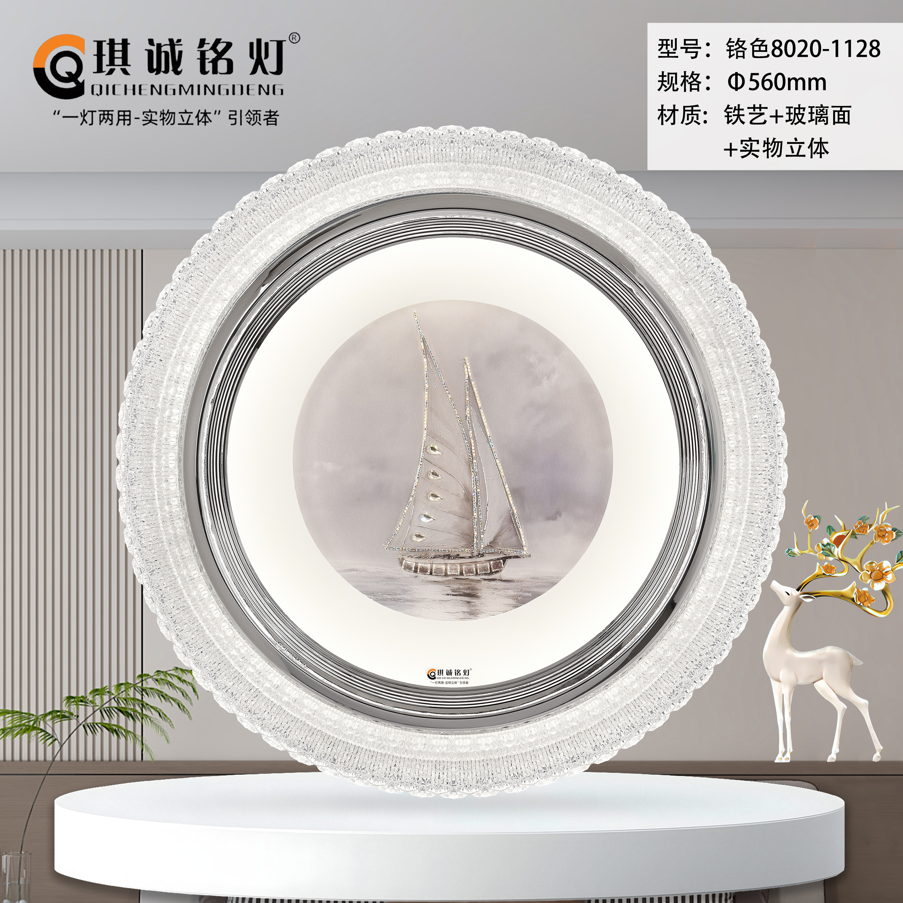 主体材质:铁艺+玻璃面+实物立体